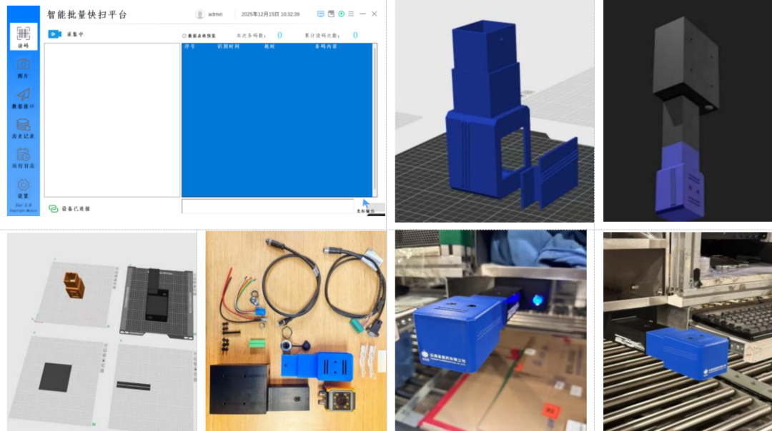 傳統(tǒng)藥品復核依賴人工手持掃碼槍逐件操作,效率低且易出錯。針對外購設備兼容性差、成本高等問題,設備技術團隊果斷啟動自主研發(fā)。自2025年9月起,團隊先后完成“智能批量快掃平臺”軟件開發(fā)、設備結構自主設計與3D打印成型,并對核心視覺識別模塊進行多輪選型與調試,于12月成功安裝51臺批量掃碼設備,實現(xiàn)從軟件到硬件的全鏈路自主可控。